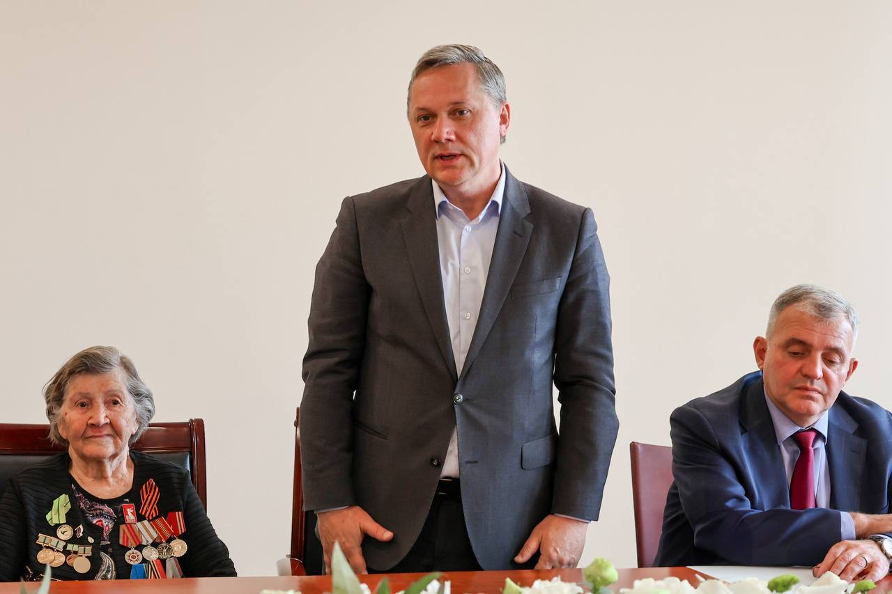 Ветеранов поблагодарили и поздравили с юбилеем Победы глава города-героя Новороссийска Андрей Кравченко, глава города Курска Сергей Котляров и глава Пятигорска Дмитрий Ворошилов.