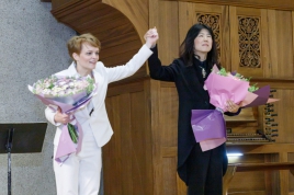 Очень неожиданный дуэт органа и саксофона, который удался вполне. Это сочетание виртуозного владения инструментом каждой из музыкантов, по-настоящему виртуозно сыгранного, очень хорошо чувствующего друг друга дуэта и, разумеется, музыки замечательных композиторов. Очень важно, что в репертуаре присутствовала музыка разных стран – России, Армении, Советского Союза, мировая музыкальная классика. Мне кажется, это очень хорошо отражает ту универсальность, которая отличает русскую и армянскую культуры. И выражение этой универсальности в наше непростое время очень важно. Я очень рад, что этот концерт, это замечательное исполнение было приурочено к празднику моей родины», – поделился своими впечатлениями Чрезвычайный и Полномочный посол Российской Федерации в Республике Армения Сергей Копыркин. Саксофонистка Вероника Кожухарова является известным музыкантом и поистине виртуозным исполнителем. Она работала с такими дирижерами и музыкантами, как Юрий Башмет, Ван Клиберн, Владимир Зива, Константин Орбелян, Артур Арнольд, Себастьян Биллар, Борис Андрианов, Дмитрий Илларионов, Александр Болдачев, Артем Чирков, Екатерина Мочалова и т.д. География гастролей Вероники насчитывает более 15 стран, а каждый ее сольный концерт — это история, рассказанная слушателям с помощью саксофона, который не играет, а исповедуется на глазах у публики. «Сегодня удалось донести для слушателей, что саксофон бывает очень разным. Это не только джаз. Нет джазовых или классических инструментов. Важно, кто играет на инструменте. Я рада за возможность показать, что саксофон может быть очень многогранным – и лирическим, и романтическим, и агрессивным, и немного ироничным», – рассказала Вероника. С японской органисткой Хироко Иноуэ Вероника Кожухарова творчески сотрудничает уже многие годы. Хироко – яркий представитель нового поколения академических исполнителей XXI века, талантливых музыкантов, умеющих чутко слышать время. Она – лауреат международных конкурсов органистов им. М. Галанти (Италия), Валерия Кикты (Москва), дипломант Международного конкурса органистов им. М. Таривердиева. Ее репертуар поражает необычайной широтой исполнительского кругозора и разнообразием жанров. «Россия – для меня вторая Родина. Моя творческая деятельность тесно связана с ней. Рада, что могу принять участие в концерте по случаю такой важной для России даты. Я принимала участие в Международном конкурсе органистов им. М. Таривердиева, который, как армянский композитор, является олицетворением синтеза русской и армянской культур. Я много изучала творчество Таривердиева и сегодня очень рада быть на его родине. Я впервые в Армении и удивлена доброте и открытости людей, восхищена красотой природы этой страны», – рассказала в беседе с нами Хироко Иноуэ . Непривычность состава диктует и необычность репертуара. Кредо дуэта – совмещать несовместимое. В его программах любимые произведения классического наследия, совмещенные с сочинениями современных композиторов. В ходе ереванского концерта прозвучали произведения Баха, Бабаджаняна, Таривердиева, Чайковского, Доги, Азнавура, Спендиаряна, Хачатуряна и других композитров. «Мы выходим за рамки своих инструментов и это нас объединяет. Саксофон – один из самых молодых инструментов, а орган – один из самых старых. Соединение эти