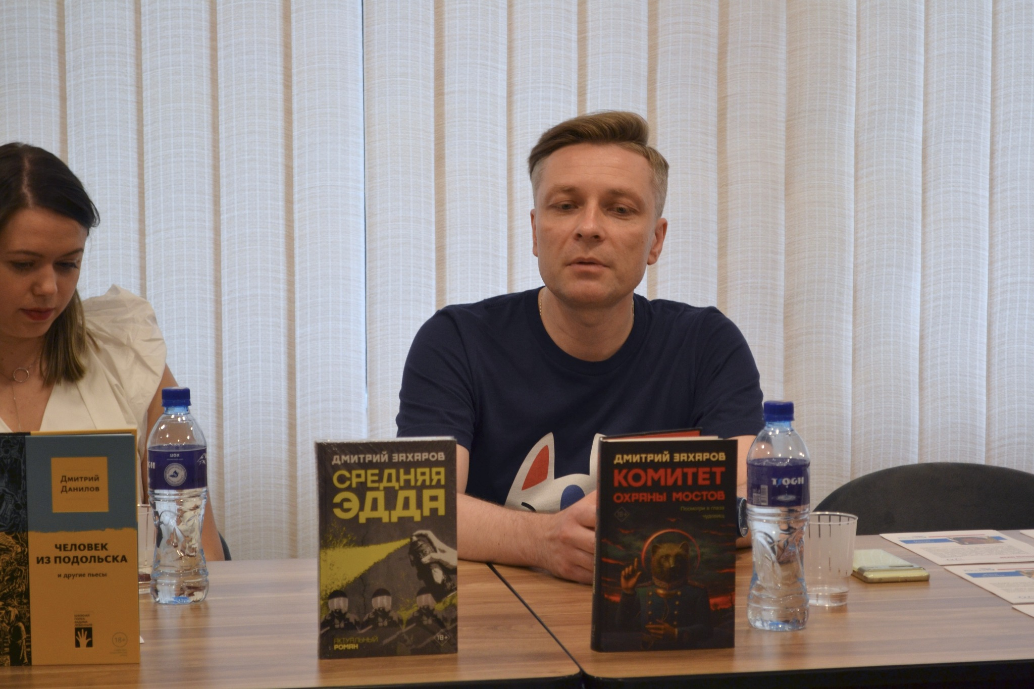 На площадке Дома Москвы в Ереване прошла также творческая встреча и обсуждение на тему «Правда и вымысел в произведениях писателей Дмитрия Захарова и Дмитрия Данилова». Ведущая мероприятия бренд-менеджер «Редакции Елены Шубиной» Татьяна Стоянова представила особенности тематики произведений и творческого почерка писателей. По ее словам, хотя оба они работают в жанре антиутопии, у Дмитрия Данилова она философская, ироничная и завораживающая в своей пугающей обыденности, тогда как произведения Дмитрия Захарова напоминают социально-политические триллеры. «Если говорить о правде и вымысле в произведениях писателей, то можно сказать, что в романах Дмитрия Данилова, в частности, в его новой книге «Саша, привет!» лишь наблюдаются фантастические допущения, между тем в центре событий произведений Дмитрия Захарова налицо сюжетообразующие элементы, связанные с другой реальностью», — отметила Татьяна Стоянова.