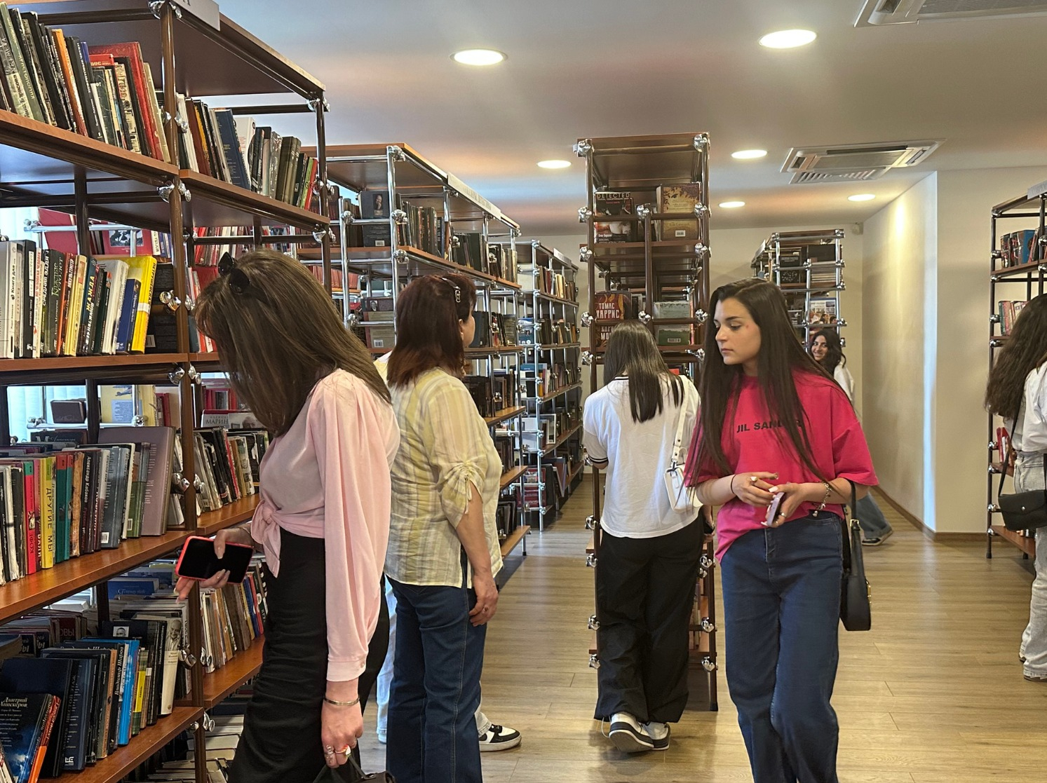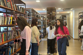 Гости посетили также библиотеку Дома Москвы в Ереване, где библиотекарь Марина Гевондян представила все разнообразие хранящейся там художественной литературы, рассказала о книжных новинках и посоветовала молодым людям побольше читать.