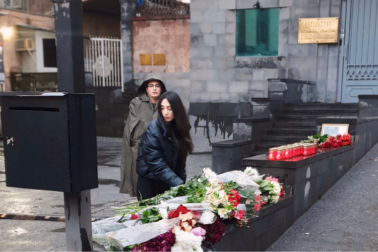 Цветы  несли и к зданию Генерального консульства России в Гюмри.