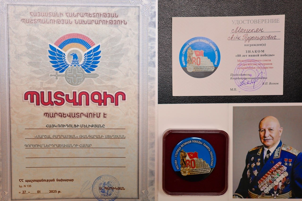 Мероприятие завершилось церемонией награждения. За вклад в создание музея почетной грамотой Министерства обороны РА, а также знаком «80 лет нашей Победы» Международного союза «Содружество ветеранов независимых государств» был награжден директор Филиала ГАУ МДС «Дом Москвы в Ереване» Айк Меликян.