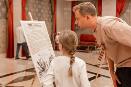 В холле гостей встречала серия материалов из фотовыставки ТАСС «Их подвиг бессмертен», впервые представленной в апреле в Министерстве иностранных дел РФ. На стендах экспозиции были размещены фотографии из архива старейшего информационного агентства России и сообщения из сводок «Вестника фронтовой информации» и «Вестника союзной информации», повествующие о важнейших событиях последних месяцев Великой Отечественной войны.