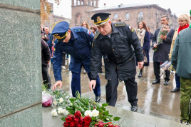 В день 128-летия легендарного военачальника, маршала, Дважды Героя Советского Союза Ивана (Ованнеса) Баграмяна в Ереване прошла церемония возложения цветов к памятнику полководца.
