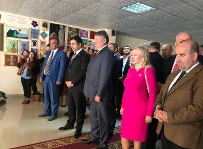 Гостей во главе с директорами встречали учителя и ученики школ, которые подготовили для них маленькое выступление.