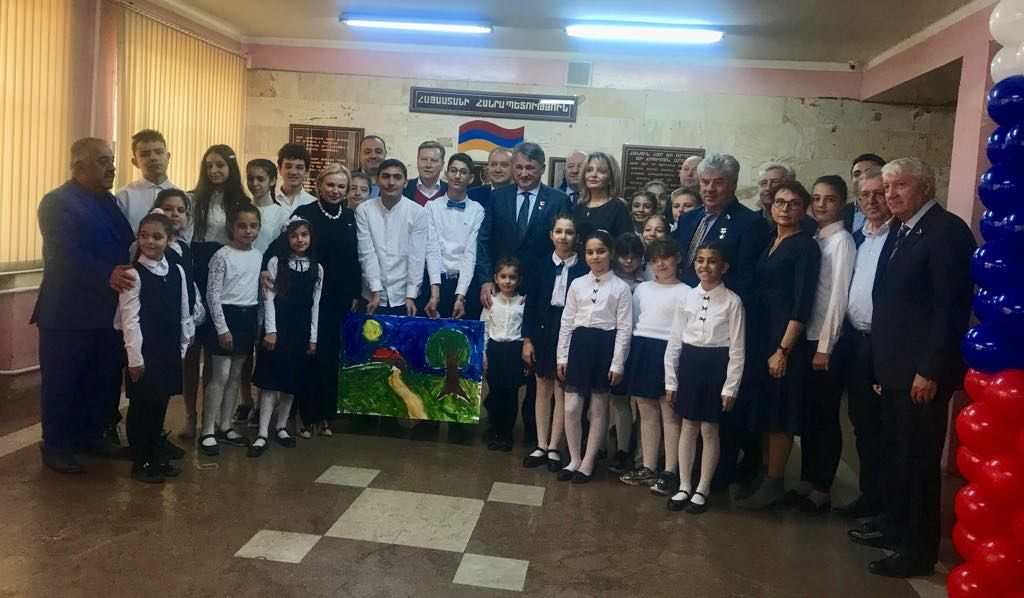 В рамках визита в Армению российская делегация подарила учебники средним школам № 23 г. Гюмри и N 7 им. Владимира Маяковского г. Еревана, где действуют классы с русским языком обучения.