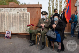 После выступления участников церемонии, капсулу с землей с места смерти бойца, перезахоронили у памятника ВОВ в родном городе, где родился Егиш Оганесян со всеми воинскими почестями.